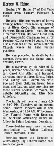 The Austin American listed Herbert Heine as the owner and manager of Elroy Co-op Gin in 1965. He was also a ginner then too. (Ref: https://www.newspapers.com/newspage/386435900/)